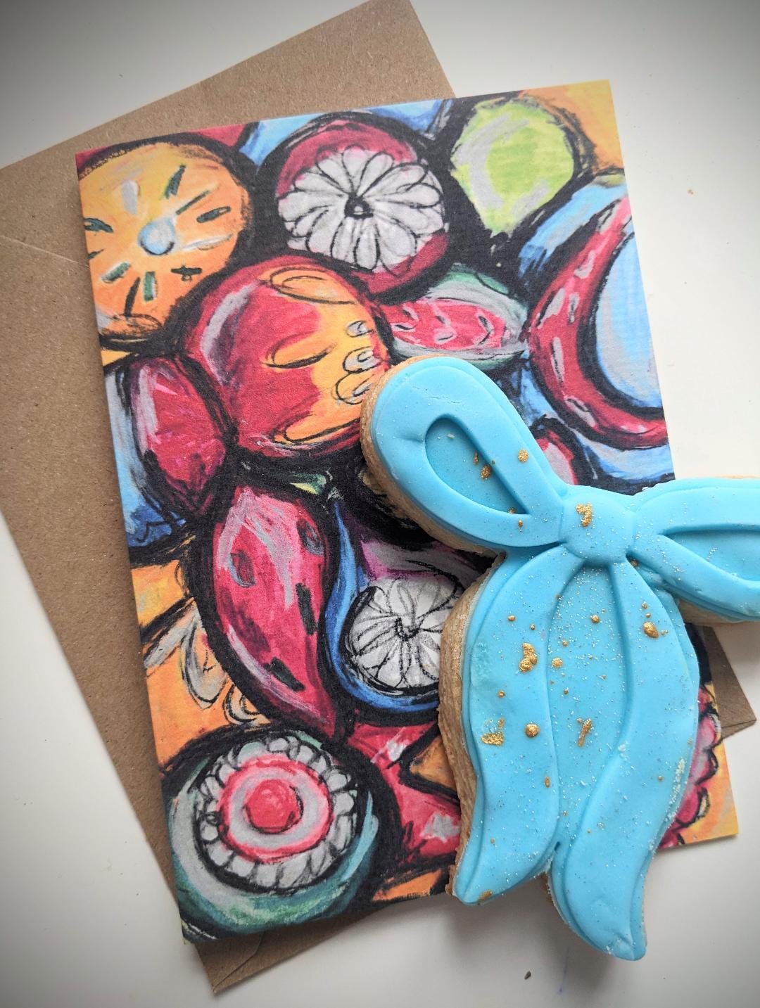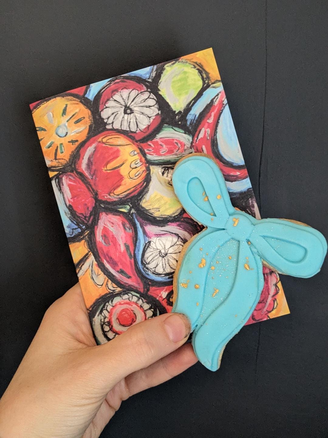 Looking for a unique Christmas Gift: Our hand iced Christmas Bow Biscuit and Christmas card gift set make the for a thoughtful Sectet Santa Gift or stocking filler, guaranteed to bring some festive joy!