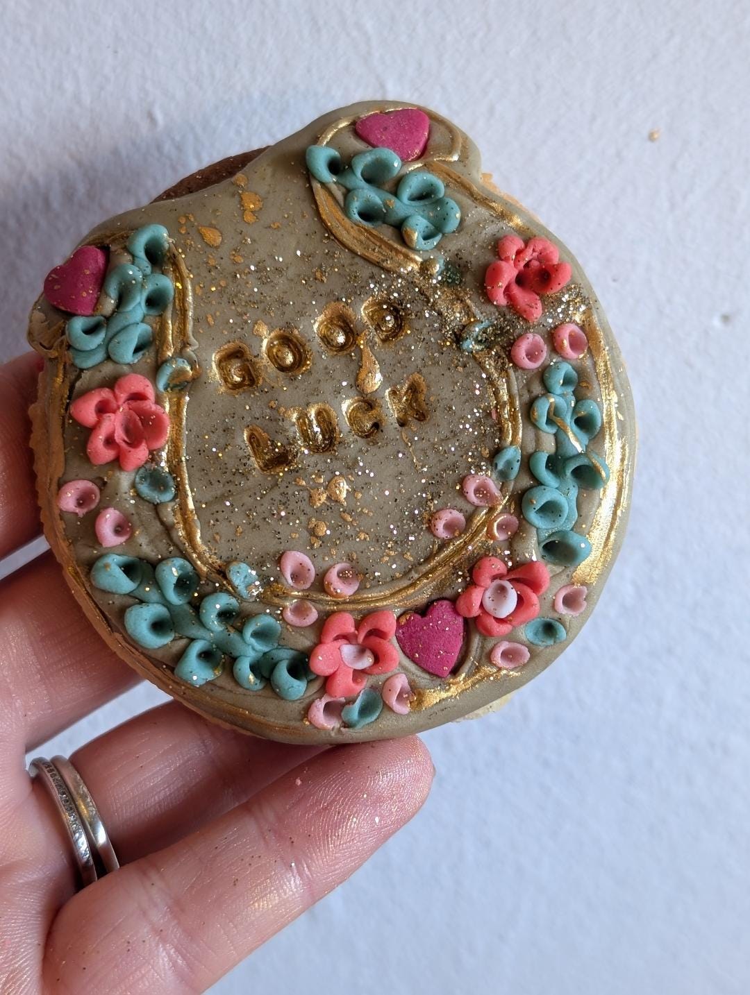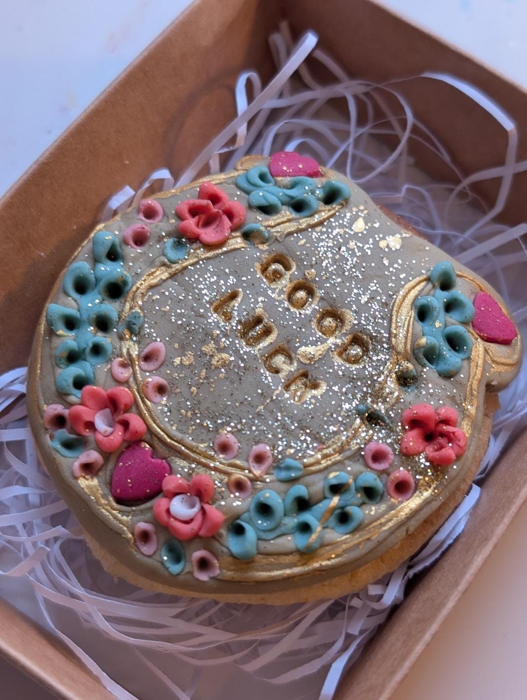 Our Personalised Good Luck horse shoe biscuit is designs to spread joy and ease some tension before the stresful exam season.